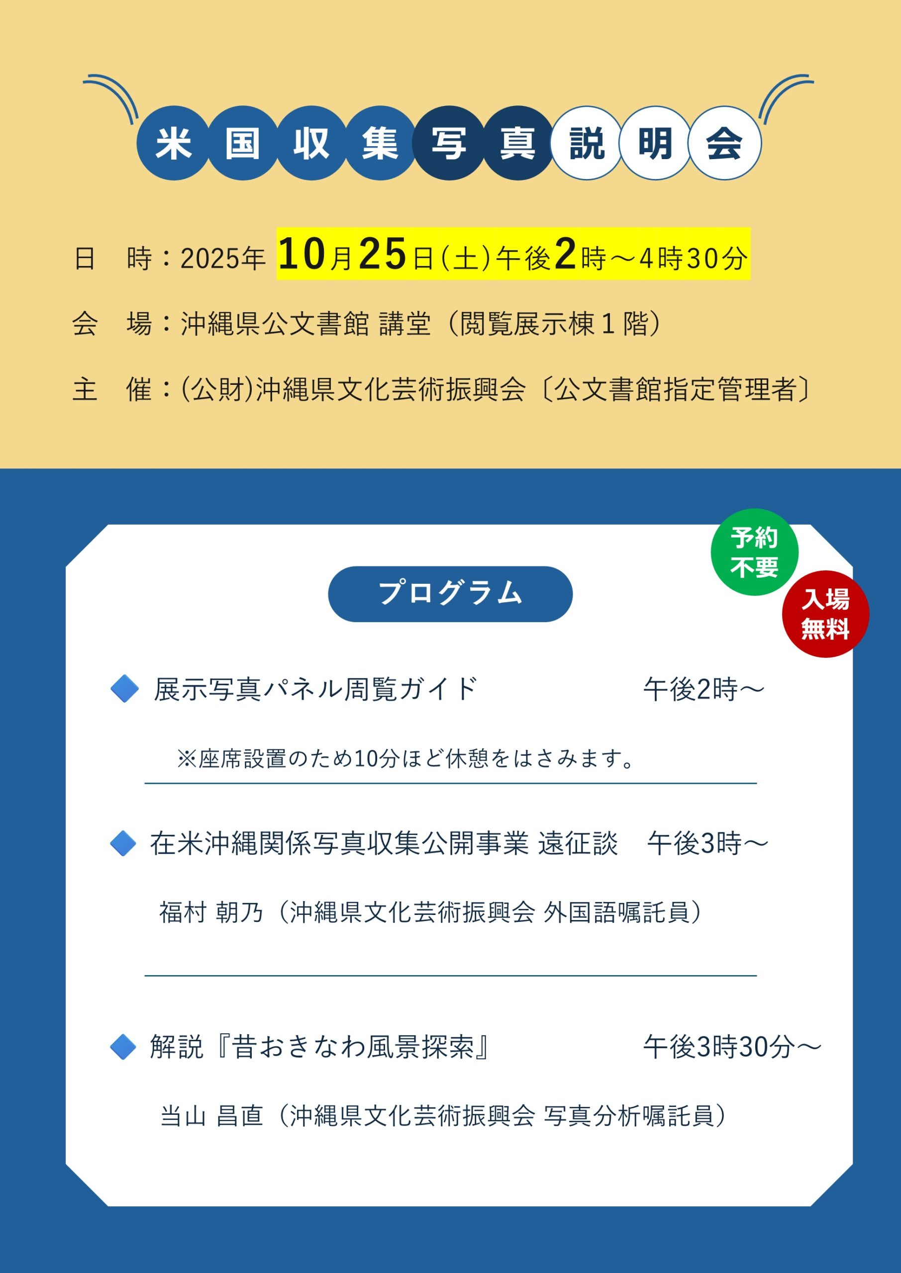会 場:沖縄県公文書館 講堂(閲覧展示棟1階) 入場無料・予約不要